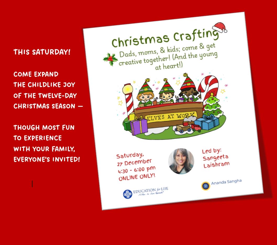 Treat your children and/or your inner child to a delightful Christmas multimedia art activity with one of Santa’s chief elves, whose joyful enthusiasm and art experience could probably spark creativity in even a stone wall. Bring what you’d like of these from around your house (or other inspirations): • Crayons, coloured pencils, watercolours, paper • Glitter, ribbon, cord • Paste or glue • Spices of all kinds (like cloves, star anise, rock salt • Uncooked pasta, especially in shapes • Something aromatic with pine, vanilla, or cinnamon scent • Perhaps a cup of something warm & cosy, like apple cider 🌲 ZOOM INVITATIONAL LINK: https://us02web.zoom.us/j/84536589458?pwd=Iw4fr2sBQ2q7iRxjzo8qLKfaINH1gE.1 Mark your calendar!