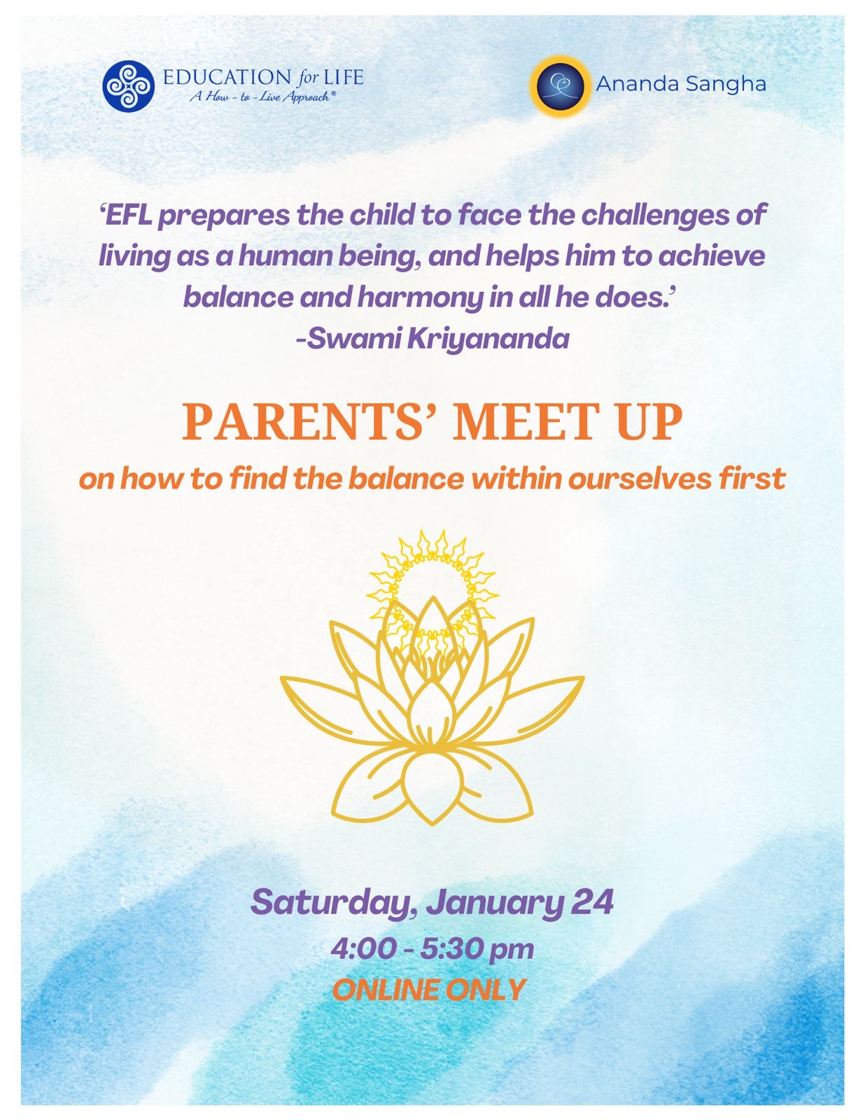 New explorations for parents await in the new year … with Education for Life (EFL), Yoganandaji’s life-changing principles & practices for lifelong learning!